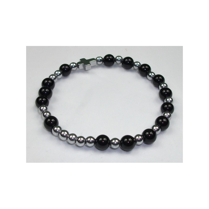 Różaniec 10-tka na rękę bransoletka Hematyt-Onyks