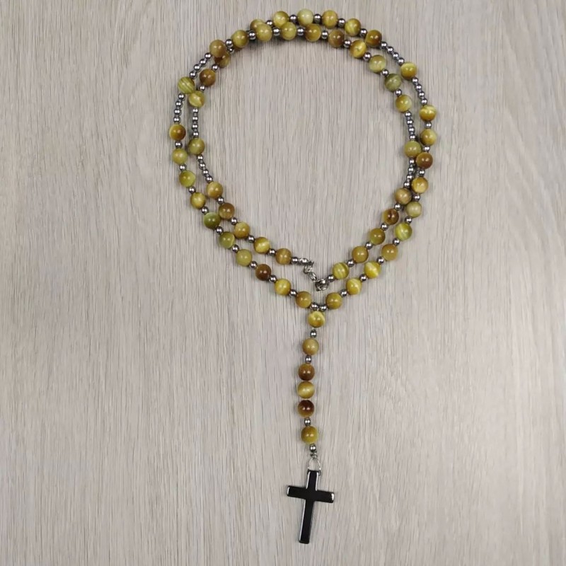 Różaniec naszyjnik wykonany z kamieni Tygrysie oko i hematyt
