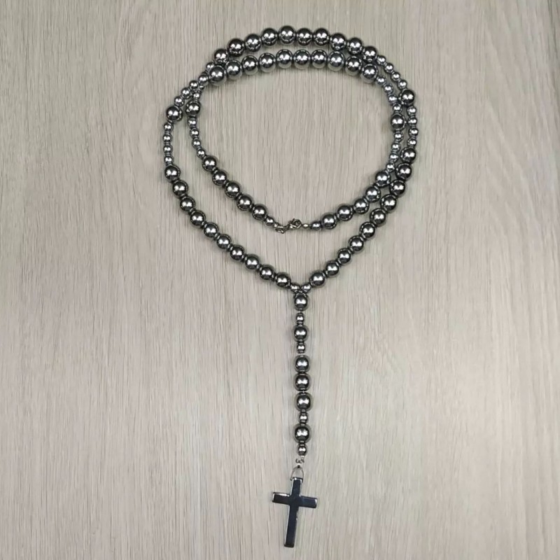 Różaniec naszyjnik wykonany z kamieni hematyt